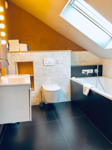 Situé à Honfleur, l’hébergement Maison d'architecte en plein cœur d'Honfleur avec bain nordique offre une vue sur la ville. Il possède une salle de sport, un salon commun, une terrasse et une connexion Wi-Fi gratuite. Cet hébergement propose une cuisine commune et est installé à 1,6 km de : Plage du Butin. Possédant un lecteur Blu-ray, cette maison de vacances comporte une cuisine avec un réfrigérateur, un lave-vaisselle et un four, un salon avec un coin salon et un coin repas, 6 chambres, et 4 salles de bains avec une douche et un bain à remous. Des serviettes et du linge de lit sont à disposition. L’établissement Maison d'architecte en plein cœur d'Honfleur avec bain nordique dispose d’un bain à remous. Vous pourrez bénéficier d’un barbecue sur place. Vous séjournerez à proximité de ces lieux d’intérêt : Musée de la Forge, Vieux port de Honfleur et Musée d'ethnographie et d'art populaire. L'aéroport le plus proche (Aéroport de Deauville - Normandie) est à 9 km. |