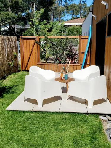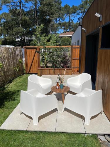 Situé à Hossegor, l’hébergement La Suite du Jardin - Villa 5 etoiles offre une vue sur le jardin. Il propose une terrasse et une connexion Wi-Fi gratuite. Cet hébergement est installé à 2,5 km de : Plage du Parc. Il comprend un jardin et un parking privé gratuit. Cette maison de vacances avec climatisation se compose de 1 chambre, d'un salon, d'une cuisine entièrement équipée avec un réfrigérateur et une machine à café, ainsi que de 1 salle de bains avec une douche et un sèche-cheveux. Cet hébergement met à votre disposition des serviettes et du linge de lit. Vous séjournerez à respectivement 36 km et 39 km de ces lieux d’intérêt : Gare de Biarritz La Négresse et Gare de Dax. L'aéroport le plus proche (Aéroport de Biarritz-Pays basque) est à 32 km. |