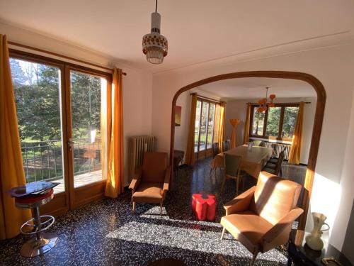 Situé à Jaujac, l’hébergement NOUVEAU Villa Olga offre une vue sur le jardin. Il propose une piscine extérieure ouverte en saison, un jardin, un salon commun et une connexion Wi-Fi gratuite. Cette villa comprend un parking privé gratuit et se trouve dans une région où vous pourrez pratiquer des activités telles que la randonnée, la plongée avec tuba et le ping-pong. Cette villa compte 5 chambres, un salon comportant une télévision à écran plat, une cuisine entièrement équipée et 2 salles de bains. Vous pourrez profiter d’une terrasse ainsi que d’un barbecue sur place, et pratiquer le vélo dans les environs. Vous séjournerez à respectivement 47 km et 48 km de ces lieux d’intérêt : Pont d'Arc et Gorges de l'Ardeche. L'aéroport le plus proche (Aéroport Le Puy-en-Velay - Loudes) est à 87 km. |