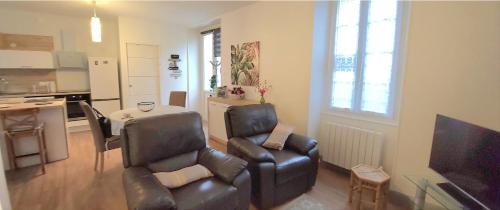 L’hébergement Maison de ville avec Terrasse "La Sympathique" se trouve à Jonzac, dans la région Poitou-Charentes. Il comprend un balcon. Cet hébergement est installé à 46 km de : Gare de Saintes. Il propose une connexion Wi-Fi gratuite et un service de concierge. Cet appartement se compose de 2 chambres, d'un salon, d'une cuisine entièrement équipée avec un réfrigérateur et une machine à café, ainsi que de 1 salle de bains avec une douche et un sèche-cheveux. Des serviettes et du linge de lit sont disponibles. Vous séjournerez à respectivement 44 km et 46 km de ces lieux d’intérêt : Cathedrale Saint Pierre et Abbaye aux Dames. L'aéroport le plus proche (Aéroport de Bordeaux-Mérignac) est à 94 km. |