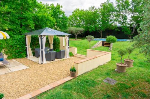Situé au cœur du parc national du Luberon, en Provence, le Mas de Rosemarie propose 4 villas indépendantes à la décoration luxueuse. Chacune possède son propre jardin privé et sa piscine. Elles comprennent toutes un salon avec télévision à écran plat, patio et terrasse. Leur cuisine entièrement équipée est dotée d'un lave-vaisselle et d'un four micro-ondes. Leur salle de bains est pourvue d'un sèche-cheveux et de serviettes de toilette. Du linge de maison est également fourni. Un restaurant est implanté à 500 mètres et vous trouverez un supermarché à 6 km. Bénéficiant d'un parking gratuit, le Mas de Rosemarie est installé à 500 mètres de Joucas et à 6 km de Gordes. La gare TGV d'Avignon se trouve à 25 km et l'aéroport de Marseille Provence est accessible à 80 km. |