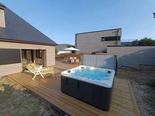 L’hébergement en bord de mer villa Le Sillage se trouve à Jullouville, à seulement 300 mètres de ce lieu d’intérêt : Plage de Jullouville. Il propose un jardin, une plage privée, un salon commun et une connexion Wi-Fi gratuite. Cet hébergement est installé à 9 km de : Gare de Granville. Il comprend une terrasse et un parking privé gratuit. Cette villa compte 4 chambres, une cuisine avec un réfrigérateur et un lave-vaisselle, une télévision à écran plat, un coin salon, ainsi que 2 salles de bains comportant une douche. Des serviettes et du linge de lit sont disponibles. L’établissement villa Le Sillage dispose d’un bain à remous. Vous séjournerez à respectivement 11 km et 11 km de ces lieux d’intérêt : Port de Granville et Musée d'art moderne Richard Anacréon. |