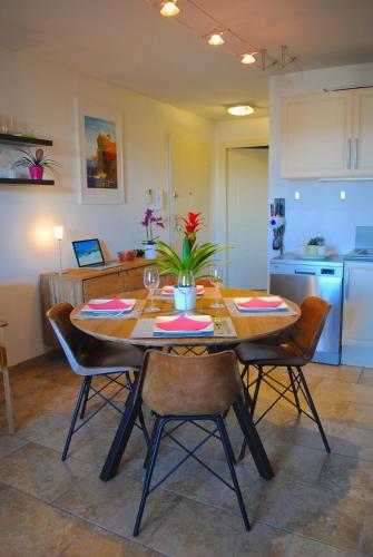 L’hébergement APPART CLIMATISE / TERRASSE A 2 MIN DE LA PLAGE offre une vue sur la montagne, à environ 1,6 km de ce lieu d’intérêt : Port de L'Île-Rousse. Il possède un balcon et une machine à café. Cet hébergement avec climatisation est installé à 500 mètres de : Plage Napoléon. Vous pourrez profiter d’une connexion Wi-Fi gratuite et d’un parking privé disponible sur place. Cet appartement comporte 1 chambre, 1 salle de bains, du linge de lit, des serviettes, une télévision à écran plat avec les chaînes du satellite, un coin repas, une cuisine entièrement équipée et une terrasse offrant une vue sur la ville. Si vous souhaitez découvrir la région, vous aurez la possibilité de pratiquer la randonnée dans les environs. Vous séjournerez à respectivement 1,6 km et 11 km de ces lieux d’intérêt : Phare de la Pietra et Lac de Codole. L'aéroport le plus proche (Aéroport de Calvi - Sainte-Catherine) est à 21 km. |