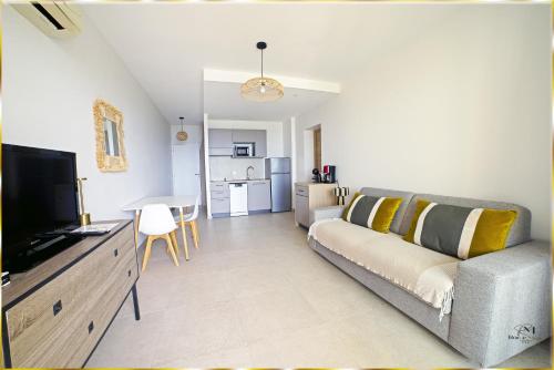 ![]() ![]() ![]() ![]() Cet appartement climatisé comprend un salon, une chambre séparée et une salle de bains pourvue d’une douche. La kitchenette est équipée de plaques de cuisson, d’un réfrigérateur, d’un lave-vaisselle et d’ustensiles de cuisine. Cet appartement dispose d'une terrasse avec vue sur la mer, d'un plateau/bouilloire et d'une télévision à écran plat. Le logement comporte 2 lits. |