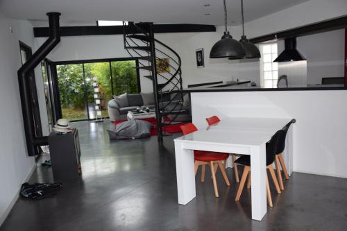 L’hébergement en bord de mer Villa plage piscine chauffée vous accueille à La Bernerie-en-Retz, à seulement quelques pas de ce lieu d’intérêt : Plage de Crève-Cœur. Il comprend une piscine extérieure ouverte en saison, un jardin, un salon commun et une connexion Wi-Fi gratuite. Cette maison de vacances propose un parking privé gratuit et une cuisine commune. Cette maison de vacances compte 4 chambres, une cuisine avec un réfrigérateur et un lave-vaisselle, une télévision à écran plat, un coin salon, ainsi que 2 salles de bains possédant une douche. Des serviettes et du linge de lit moyennant des frais supplémentaires. Cet établissement dispose d’une terrasse. Vous séjournerez à respectivement 6,6 km et 11 km de ces lieux d’intérêt : Gare de Pornic et Château de Pornic. L'aéroport le plus proche (Aéroport de Montoir) est à 33 km. |