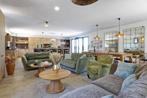 Situé à La Celle, l’hébergement Un joli hameau au coeur du vignoble de l'Escarelle et de la Provence Verte offre une vue sur la montagne. Il possède une piscine extérieure ouverte en saison, un jardin, une terrasse et une connexion Wi-Fi gratuite. Cette villa possède un parking privé gratuit et se trouve dans une région où vous pourrez pratiquer des activités telles que la randonnée et le ping-pong. Cette villa compte 11 chambres, une cuisine avec un réfrigérateur et un lave-vaisselle, une télévision à écran plat, un coin salon, ainsi que 11 salles de bains possédant une baignoire ou une douche. Des serviettes et du linge de lit sont mis à votre disposition. Cet établissement dispose d’un barbecue. Un service de location de vélos est assuré sur place. Vous séjournerez à 38 km de ce lieu d’intérêt : Circuit Paul-Ricard. L'aéroport le plus proche (Aéroport de Toulon - Hyères) est à 52 km. |