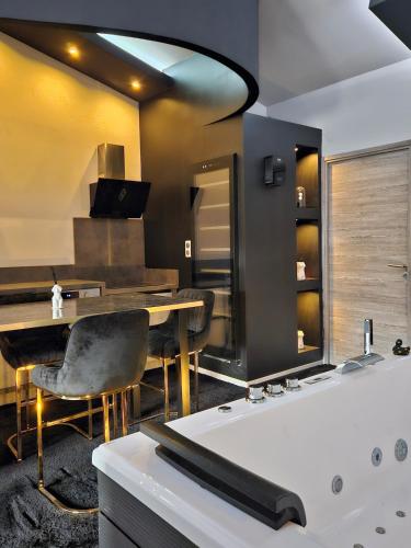Doté d’un bain à remous, l’hébergement Love Room Le Jardin D'Éden vous accueille à La Motte-Servolex, à 5,9 km de ce lieu d’intérêt : Fontaine des éléphants. Cet hébergement est installé à 2,1 km de : Savoiexpo. Il possède un bar et un parking privé gratuit. Cet hébergement avec climatisation comprend également une télévision à écran plat, une cuisine entièrement équipée avec un réfrigérateur, un coin salon, un lave-linge, ainsi que 1 salle de bains avec une douche, un bain à remous et une baignoire. Vous séjournerez à respectivement 17 km et 4,6 km de ces lieux d’intérêt : Lac du Bourget et Gare de Chambéry. L'aéroport le plus proche (Aéroport de Chambéry - Savoie) est à 6 km. |