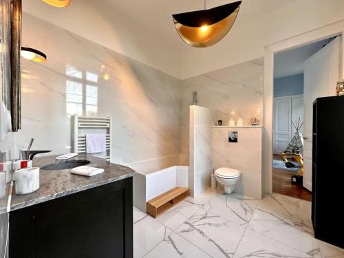 Offrant une vue sur le jardin, l’hébergement Rouen Paris - Domaine de l'Oison possède un jardin, à environ 19 km de ce lieu d’intérêt : Parc des expositions de Rouen. Cet hébergement met à votre disposition une terrasse, une table de ping-pong, un parking privé gratuit et une connexion Wi-Fi gratuite. Cet appartement comporte 6 chambres, une télévision, ainsi qu’une cuisine entièrement équipée avec un lave-vaisselle, un four, un lave-linge, un micro-ondes et une plaque de cuisson. Cet hébergement met à votre disposition des serviettes et du linge de lit. Vous séjournerez à respectivement 21 km et 22 km de ces lieux d’intérêt : 14-juillet Tramway Station, Rouen et Hotel de ville de Soteville Station, Rouen. L'aéroport le plus proche (Aéroport de Deauville - Normandie) est à 82 km. |