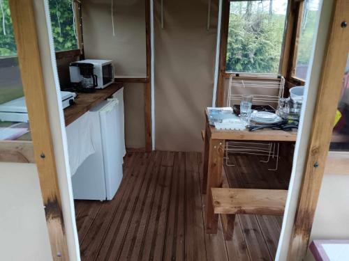 Situé à La Tour-dʼAuvergne et offrant une vue sur le jardin, l’établissement Camping la Vallée possède un salon commun, une terrasse, un restaurant, un bar et un barbecue. Il propose gratuitement une connexion Wi-Fi et un parking privé. Un réfrigérateur, un micro-ondes et une plaque de cuisson sont également à disposition dans la kitchenette, de même qu’une machine à café. Un petit-déjeuner continental est servi sur place. Cet établissement dispose d’une aire de jeux pour enfants. Vous pourrez jouer au ping-pong sur place, et pratiquer la randonnée dans les environs. Vous séjournerez à respectivement 25 km et 26 km de ces lieux d’intérêt : Puy de Sancy et Lac Pavin. L'aéroport le plus proche (Aéroport de Clermont-Ferrand - Auvergne) est à 62 km. |