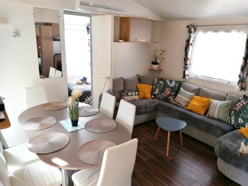 Mobile Home          Featuring a private entrance, this air-conditioned mobile home comprises 1 living room, 3 separate bedrooms and 2 bathrooms with a shower and a hairdryer. Guests will find a stovetop, a refrigerator, a dishwasher and kitchenware in the fully equipped kitchen. The mobile home also provides guests with a barbecue. Boasting a terrace with pool views, this mobile home also provides a washing machine and a flat-screen TV. The unit offers 6 beds. | ||