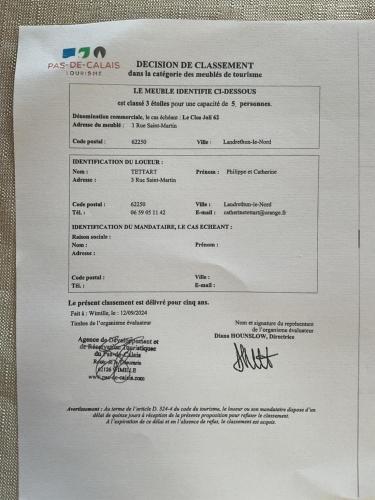 Informations importantes | Les enterrements de vie de célibataire et autres fêtes de ce type sont interdits dans cet établissement. Veuillez informer l\'établissement Le Clos Joli 62 à l\'avance de l\'heure à laquelle vous prévoyez d\'arriver. Vous pouvez indiquer cette information dans la rubrique « Demandes spéciales » lors de la réservation ou contacter directement l\'établissement. Ses coordonnées figurent sur votre confirmation de réservation. Vous devrez effectuer un virement bancaire avant votre arrivée. L\'établissement vous contactera après votre réservation pour vous donner plus d\'informations. Les clients âgés de moins de 18 ans doivent être accompagnés d\'un parent ou d\'un tuteur légal pour pouvoir s\'enregistrer. Un dépôt de garantie d\'un montant de EUR 200 est demandé à l\'arrivée. Il devra être payé en espèces. Le remboursement devrait être effectué le jour de votre départ. Le dépôt de garantie vous sera entièrement remboursé en espèces, si aucun dommage n\'a été constaté par l\'établissement. Please note that a Presentation of an identity document upon arrival is mandatory. Veuillez noter qu\'une présentation d\'une pièce d\'identité à l\'arrivée est obligatoire. Cleaning fee and towels are not included in the room rate. Les frais de ménage et les serviettes ne sont pas inclus dans le tarif de la chambre. Vous pourrez les payer sur place moyennant des frais supplémentaires de 80 EUR par séjour pour les frais de ménage et de 5 EUR par personne et par séjour pour les serviettes. Hébergement géré par un particulier |