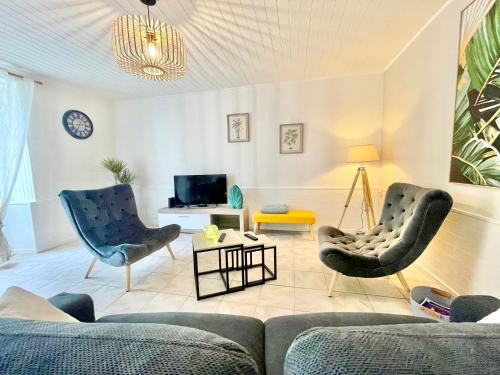 Maison de Ville 2 Chambres        This holiday home comes with 1 living room, 2 separate bedrooms and 1 bathroom with a shower and free toiletries. Guests can make meals in the kitchen that features a stovetop, a refrigerator, kitchenware and an oven. The air-conditioned holiday home features a flat-screen TV, a tea and coffee maker, a seating area, a dining area as well as a quiet street view. The unit has 3 beds. | ||