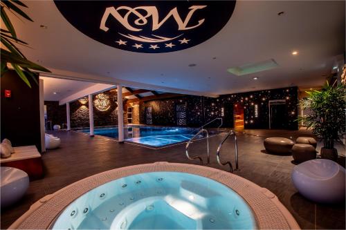L’établissement M&V Resort Camping se trouve à Langrune-sur-Mer, à respectivement 600 mètres et 8,5 km de ces lieux d’intérêt : Plage de Saint-Aubin-sur-Mer et Juno Beach. Offrant une vue sur le jardin, il propose une connexion Wi-Fi gratuite, un jardin avec une piscine extérieure, ainsi qu’une piscine intérieure et un sauna. Les hébergements sont dotés d’une terrasse, de la climatisation et d’une télévision à écran plat. Leur salle de bains privative comprend une douche et des articles de toilette gratuits. Un réfrigérateur, un micro-ondes et une plaque de cuisson sont également disponibles dans la cuisine, de même qu’une machine à café. Cet établissement 5 étoiles propose un bain à remous, un hammam et un spa. Après une journée de randonnée, de pêche ou de vélo, vous pourrez vous détendre dans le salon commun. Vous séjournerez à respectivement 8,7 km et 17 km de ces lieux d’intérêt : Centre Juno Beach et Mémorial de Caen. L'aéroport le plus proche (Aéroport de Caen-Carpiquet) est à 25 km. |