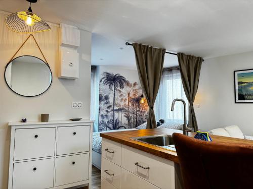 L’hébergement Le studio des Abers se trouve à Lannilis, à respectivement 25 km, 23 km et 25 km de ces lieux d’intérêt : Musée national de la Marine, Brest, Conservatoire botanique national de Brest et Château de Brest. Il propose une connexion Wi-Fi gratuite. Occupant un bâtiment datant de 1850, cet appartement est à respectivement 26 km et 23 km de : Centre de culture scientifique Océanopolis et Parc des expositions de Penfeld. Cet appartement comporte 1 chambre, une télévision à écran plat avec les chaînes du satellite, ainsi qu’une cuisine entièrement équipée avec un réfrigérateur, un four, un lave-linge, un micro-ondes et une plaque de cuisson. Des serviettes et du linge de lit sont disponibles. Vous séjournerez à respectivement 23 km et 24 km de ces lieux d’intérêt : Golf de Brest-Pen Ar Bed et Gare de Brest. L'aéroport le plus proche (Aéroport Brest Bretagne) est à 18 km. |