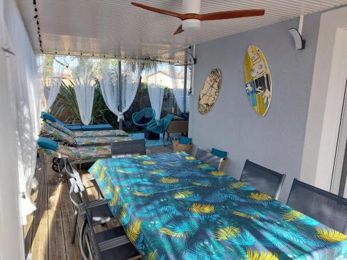 Offrant une vue sur le jardin, l’hébergement BASSIN D'ARCACHON, Maison vacances climatisée au calme, proche plage comprend un service de prêt de vélos, un jardin et un casino, à environ 700 mètres de ce lieu d’intérêt : Plage de Suzette. Cet hébergement met à votre disposition une terrasse, une table de ping-pong, un parking privé gratuit et une connexion Wi-Fi gratuite. Cette maison de vacances avec climatisation se compose de 3 chambres, d'un salon, d'une cuisine entièrement équipée avec un réfrigérateur et une machine à café, ainsi que de 1 salle de bains avec une douche et un sèche-cheveux. Cet hébergement met à votre disposition des serviettes et du linge de lit. Si vous souhaitez découvrir la région, vous aurez la possibilité de pratiquer le vélo dans les environs. Vous séjournerez à respectivement 26 km et 28 km de ces lieux d’intérêt : Parc d’attractions La Coccinelle et Kid Parc - Île d’aventures. L'aéroport le plus proche (Aéroport de Bordeaux-Mérignac) est à 32 km. |