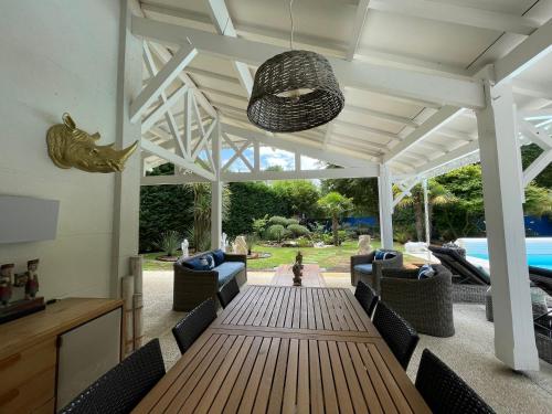 Situé à Lanton, l’hébergement La Maison Blanche de Lanton offre une vue sur la piscine. Il possède une piscine extérieure ouverte en saison, un jardin, une terrasse et une connexion Wi-Fi gratuite. Cet hébergement met à votre disposition une piscine privée et un parking privé gratuit. Cette maison de vacances avec climatisation se compose de 2 chambres, d'un salon, d'une cuisine entièrement équipée avec un réfrigérateur et une machine à café, ainsi que de 2 salles de bains avec une douche et un sèche-cheveux. Des serviettes et du linge de lit sont à disposition. Vous séjournerez à respectivement 2,3 km et 25 km de ces lieux d’intérêt : Plage de Suzette et Parc d’attractions La Coccinelle. L'aéroport le plus proche (Aéroport de Bordeaux-Mérignac) est à 29 km. |
