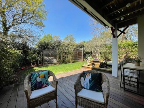Offrant une vue sur le jardin, l’hébergement Le Gahignon propose une terrasse et un balcon, à environ 25 km de ce lieu d’intérêt : Parc d’attractions La Coccinelle. Cet hébergement est installé à 2,3 km de : Plage de Suzette. Il possède un jardin et un parking privé gratuit. Cette maison de vacances se compose de 2 chambres, d'un salon, d'une cuisine entièrement équipée avec un réfrigérateur et une machine à café, ainsi que de 2 salles de bains avec une douche et un sèche-cheveux. Des serviettes et du linge de lit sont mis à votre disposition. Vous séjournerez à respectivement 25 km et 34 km de ces lieux d’intérêt : Kid Parc - Île d’aventures et Zoo de Pessac. L'aéroport le plus proche (Aéroport de Bordeaux-Mérignac) est à 29 km. |