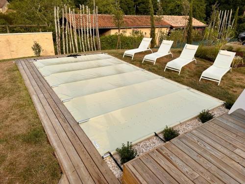 Cet hébergement avec climatisation est installé à 32 km de : Gare de Bergerac. Vous pourrez profiter d’une connexion Wi-Fi gratuite et d’un parking privé disponible sur place. Cette villa compte 1 chambre, une cuisine avec un réfrigérateur et un lave-vaisselle, une télévision à écran plat, un coin salon, ainsi que 1 salle de bains comportant une douche. Des serviettes et du linge de lit sont disponibles. En plus de la piscine extérieure ouverte toute l'année, l’établissement Clos César, Maison de charme rénovée propose une terrasse. Vous séjournerez à respectivement 47 km et 49 km de ces lieux d’intérêt : Gare de Sarlat-la-Canéda et Grottes de Lascaux. L'aéroport le plus proche (Aéroport Bergerac Dordogne Périgord) est à 34 km. |