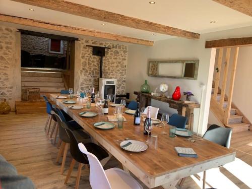 L’hébergement Le Pas Sans Peine vous accueille à Le Cergne, à 31 km de ce lieu d’intérêt : The Scarabée. Il comprend un jardin, une connexion Wi-Fi gratuite et une réception ouverte 24h/24. Cette maison de vacances possède un parking privé gratuit et se trouve dans une région où vous pourrez pratiquer des activités telles que la randonnée, le vélo et le ping-pong. Cette maison de vacances comporte 5 chambres, 3 salles de bains, du linge de lit, des serviettes, une télévision à écran plat avec les chaînes du satellite, un coin repas, une cuisine entièrement équipée et une terrasse offrant une vue sur la montagne. Vous séjournerez à respectivement 27 km et 27 km de ces lieux d’intérêt : Port de Roanne et Maison des métiers d'art. L'aéroport le plus proche (Aéroport de Saint-Étienne - Bouthéon) est à 90 km. |
