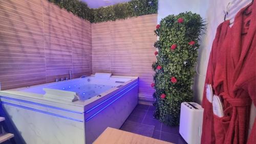 ![]() ![]() This luxurious apartment features a hot tub, a spa bath and a sauna. Featuring a private entrance, this apartment consists of a kitchenette, 1 bedroom and 1 bathroom with a shower and slippers. In the well-equipped kitchenette, guests will find a stovetop, a refrigerator, kitchenware and a microwave. The apartment provides a flat-screen TV with streaming services, a coffee machine, a dining area and heating. The unit offers 1 bed. |