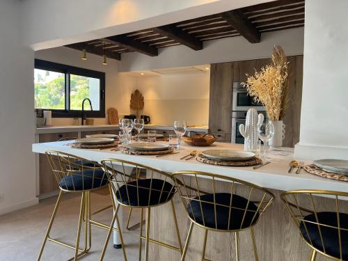 L’hébergement en bord de mer La Cigalière à 5 minutes de la plage à pied se situe au Lavandou, à seulement 700 mètres de ce lieu d’intérêt : Grande Plage. Il possède une piscine extérieure ouverte en saison, un jardin, une plage privée et une connexion Wi-Fi gratuite. Cet hébergement est installé à 33 km de : Chateau de Grimaud. Il comprend une terrasse et un parking privé gratuit. Cette villa avec climatisation se compose de 5 chambres séparées, d'un salon, d'une kitchenette entièrement équipée avec un réfrigérateur et un lave-vaisselle, ainsi que de 5 salles de bains. Une télévision est à disposition. Vous pourrez profiter d’un barbecue sur place. Vous séjournerez à respectivement 33 km et 40 km de ces lieux d’intérêt : Le Pont des Fées et Gare de Toulon. L'aéroport le plus proche (Aéroport de Toulon - Hyères) est à 23 km. |