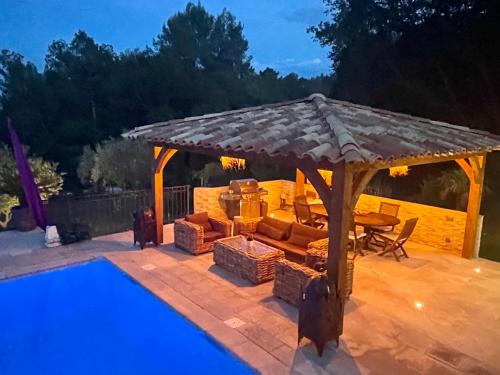Situé à Le Rouret, l’hébergement Villa Ganesh offre une vue sur la mer. Il propose un service de prêt de vélos, une piscine extérieure ouverte en saison, un jardin et une connexion Wi-Fi gratuite. Cet hébergement met à votre disposition une table de ping-pong, des fléchettes et un parking privé gratuit. Cette villa avec climatisation se compose de 6 chambres, d'un salon, d'une cuisine entièrement équipée avec un réfrigérateur et une machine à café, ainsi que de 5 salles de bains avec un bidet et une douche. Une télévision à écran plat avec les chaînes du satellite et un lecteur Blu-ray sont disponibles. Cet établissement dispose d’une aire de jeux pour enfants. Sur place, vous trouverez une terrasse et un salon commun. Vous séjournerez à respectivement 11 km et 11 km de ces lieux d’intérêt : Parfumerie Fragonard - L'usine historique Grasse et Musée International de la Parfumerie. L'aéroport le plus proche (Aéroport de Nice-Côte d'Azur) est à 21 km. |