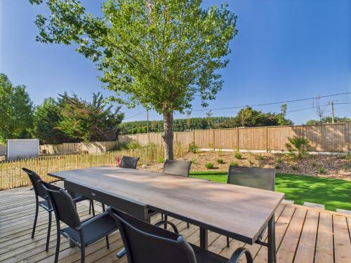 L’hébergement Chalet avec piscine pour 4 adultes-2 enfants se trouve à Le Sablais, à respectivement 20 km, 24 km et 11 km de ces lieux d’intérêt : Casino de Saint-Jean-de-Monts, Les Sables D'Olonne Arena et Golf des Fontenelles. Cet hébergement est installé à 1,1 km de : Grande Plage. Il propose un jardin et un parking privé gratuit. Ce chalet comprend 3 chambres, une télévision, une cuisine équipée avec un réfrigérateur et un lave-vaisselle, un lave-linge, ainsi que 2 salles de bains avec une douche. En plus de la piscine extérieure, l’établissement Chalet avec piscine pour 4 adultes-2 enfants possède une terrasse. Vous séjournerez à respectivement 22 km et 24 km de ces lieux d’intérêt : Golf de Saint-Jean-de-Monts et Golf des Olonnes. L'aéroport le plus proche (Aéroport de Nantes Atlantique) est à 71 km.  |