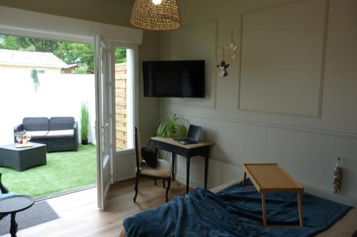 Situé au Teich, l’hébergement Le cocon des Ancelyns offre une vue sur le jardin. Il comprend une terrasse et une connexion Wi-Fi gratuite. Cet hébergement est installé à 7,3 km de : Parc d’attractions La Coccinelle. Il propose un jardin et un parking privé gratuit. Cette maison de vacances comporte 1 chambre, une cuisine entièrement équipée avec un réfrigérateur et un lave-vaisselle, ainsi que 1 salle de bains avec une douche et un bain à remous. Une télévision à écran plat est disponible. L’établissement Le cocon des Ancelyns dispose d’un bain à remous. Vous séjournerez à respectivement 7,5 km et 45 km de ces lieux d’intérêt : Kid Parc - Île d’aventures et Zoo de Pessac. L'aéroport le plus proche (Aéroport de Bordeaux-Mérignac) est à 47 km. |