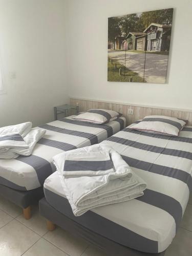L’hébergement Villa HESTIA se situe au Teich, à respectivement 9,2 km et 44 km de ces lieux d’intérêt : Kid Parc - Île d’aventures et Zoo de Pessac. Vous pourrez pratiquer la randonnée dans les environs. Cet hébergement est installé à 9 km de : Parc d’attractions La Coccinelle. Il possède un jardin et un parking privé gratuit. Disposant d’une terrasse et offrant une vue sur le jardin, cette maison de vacances possède 3 chambres, un salon, une télévision à écran plat, une cuisine équipée avec un réfrigérateur et un lave-vaisselle, ainsi que 1 salle de bains avec une douche. Des serviettes et du linge de lit sont à disposition. Un service de location de vélos est assuré sur place. L'aéroport le plus proche (Aéroport de Bordeaux-Mérignac) est à 46 km. |