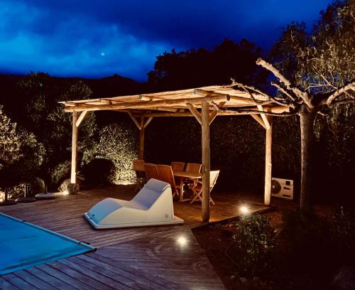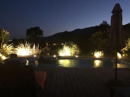 Situé à Lecci, l’hébergement Maison entre mer et montagne offre une vue sur le jardin. Il propose une piscine extérieure ouverte en saison, une terrasse et une connexion Wi-Fi gratuite. Cette villa comprend une piscine privée, un jardin et un parking privé gratuit. Cette villa avec climatisation se compose de 3 chambres séparées, d'une cuisine entièrement équipée et de 2 salles de bains. Une télévision à écran plat est disponible. L’établissement Maison entre mer et montagne dispose d’un bain à remous. Vous séjournerez à respectivement 12 km et 37 km de ces lieux d’intérêt : Port de plaisance de Porto-Vecchio et Port de plaisance de Bonifacio. L'aéroport le plus proche (Aéroport de Figari - Sud Corse) est à 31 km. |