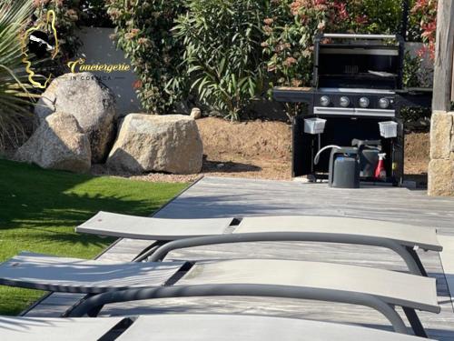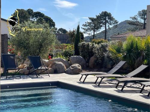 Villa Plein pied 8 pers piscine chauffée privée proche plage San Cipriano Cala Rossa Climatisation WIFI |