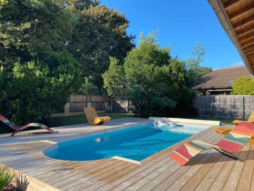 Situé à Lège-Cap-Ferret, l’hébergement Villa La Cantina, piscine offre une vue sur le jardin. Il propose une piscine extérieure ouverte en saison, un salon commun, une terrasse et une connexion Wi-Fi gratuite. Cette villa comprend une piscine privée, un jardin et un parking privé gratuit. Cette villa se compose de 5 chambres, d'un salon, d'une cuisine entièrement équipée avec un réfrigérateur et une machine à café, ainsi que de 2 salles de bains avec un bidet et une baignoire ou une douche. Des serviettes et du linge de lit moyennant des frais supplémentaires. Vous séjournerez à respectivement 40 km et 47 km de ces lieux d’intérêt : Zoo de Pessac et Parc d’attractions La Coccinelle. L'aéroport le plus proche (Aéroport de Bordeaux-Mérignac) est à 35 km. |