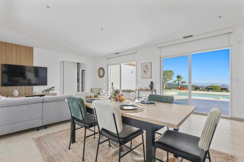 Situé à Les Adrets-de-l'Estérel, l’hébergement Superbe Villa avec vue mer sur baie de Cannes offre une vue sur la mer. Il comprend une piscine extérieure, un jardin, une terrasse et une connexion Wi-Fi gratuite. Cet hébergement met à votre disposition une piscine privée et un parking privé gratuit. Cette villa avec climatisation se compose de 5 chambres, d'un salon, d'une cuisine entièrement équipée avec un réfrigérateur et une machine à café, ainsi que de 3 salles de bains avec une douche et un sèche-cheveux. Des serviettes et du linge de lit sont à votre disposition. Vous séjournerez à respectivement 25 km et 28 km de ces lieux d’intérêt : Gare de Saint-Raphaël Valescure et Palais des festivals de Cannes. L'aéroport le plus proche (Aéroport de Nice-Côte d'Azur) est à 44 km. |