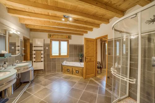 Chalet              This luxurious chalet features a hot tub, a spa bath and a fireplace. This spacious chalet consists of 1 living room, 5 separate bedrooms and 3 bathrooms with a walk-in shower and free toiletries. Guests will find a stovetop, a refrigerator, a dishwasher and kitchenware in the well-equipped kitchen. The chalet also offers a barbecue. The chalet provides a flat-screen TV with streaming services, a washing machine, a private entrance, soundproof walls as well as garden views. The unit offers 8 beds. | ||