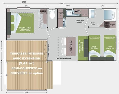 ![]() ![]() ![]() ![]() ![]() ![]() This mobile home comprises 1 living room, 2 separate bedrooms and 1 bathroom with a shower. In the well-fitted kitchen, guests will find a stovetop, a refrigerator, kitchenware and a microwave. The mobile home provides a coffee machine, a seating area, as well as an outdoor dining area and outdoor furniture. The unit offers 4 beds. |