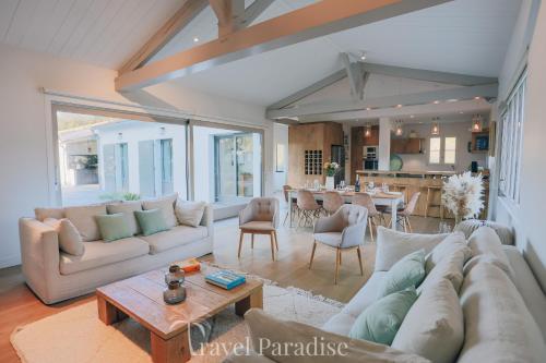 L’hébergement Villa Tomtrousse se situe à environ 600 mètres de ce lieu d’intérêt : Plage du banc du Bûcheron. Il dispose d’une piscine extérieure et d’une connexion Wi-Fi gratuite. Cette villa possède une piscine privée, un jardin et un parking privé gratuit. Cette villa comprend 6 chambres, une télévision, une cuisine équipée avec un réfrigérateur et un lave-vaisselle, un lave-linge, ainsi que 9 salles de bains avec une douche. Vous séjournerez à respectivement 47 km et 800 mètres de ces lieux d’intérêt : La Rochelle Grosse-Horloge et Golf Trousse-Chemise. L'aéroport le plus proche (Aéroport de La Rochelle - Île de Ré) est à 41 km. |