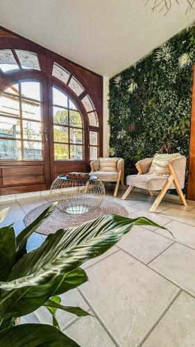L’hébergement L'échappée aux cerfs SPA vous accueille à Les Rouges-Eaux, à 32 km de ce lieu d’intérêt : Lac de Gérardmer. Il comprend un jardin, une connexion Wi-Fi gratuite, une cuisine commune et un salon commun. Doté d’un parking privé gratuit, cet hébergement est installé à respectivement 32 km et 38 km de : Gare d'Épinal et Lac de Longemer. Cette maison de vacances comporte 3 chambres, 1 salle de bains, du linge de lit, des serviettes, une télévision à écran plat avec les chaînes du câble, un coin repas, une cuisine entièrement équipée et une terrasse offrant une vue sur la montagne. L’établissement L'échappée aux cerfs SPA dispose d’un bain à remous. Cet établissement possède un barbecue. L'aéroport le plus proche (Aéroport de Strasbourg Entzheim) est à 99 km. |