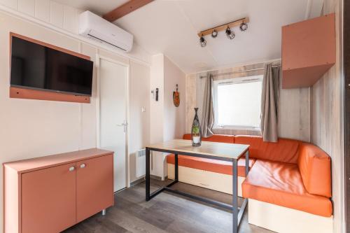 ![]() ![]() ![]() This air-conditioned mobile home consists of 1 living room, 1 separate bedroom and 1 bathroom with a shower. Meals can be prepared in the kitchen, which is equipped with a stovetop, a refrigerator, a dishwasher and kitchenware. Featuring an outdoor dining area, this mobile home also provides a coffee machine, a seating area and a flat-screen TV. The unit offers 2 beds. |