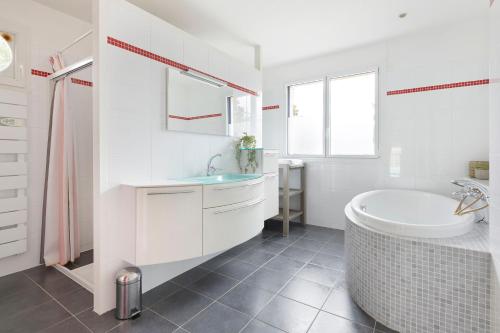 Situé à LʼHerbergement, l’hébergement La Tour Maréchal - Gîte d'exception avec piscine offre une vue sur le jardin. Il possède une piscine extérieure ouverte en saison, une terrasse et une connexion Wi-Fi gratuite. Cette villa comprend une piscine privée, un jardin et un parking privé gratuit. Cette villa comporte 1 chambre, une télévision à écran plat, ainsi qu’une cuisine entièrement équipée avec un réfrigérateur, un lave-vaisselle, un lave-linge, un four et un micro-ondes. Des serviettes et du linge de lit sont à disposition. Une aire de jeux pour enfants est également disponible sur place. Vous séjournerez à respectivement 39 km et 40 km de ces lieux d’intérêt : Le Lieu Unique et Château des ducs de Bretagne. L'aéroport le plus proche (Aéroport de Nantes Atlantique) est à 42 km. |
