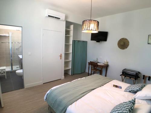 Situé à Listrac-Médoc, l’établissement Chambres d'hôtes écolabellisées du Domaine de Ludeye - sérénité dans le Médoc possède un service de prêt de vélos, une salle de sport, un jardin et une terrasse. Cette maison d'hôtes comprend des installations de sports nautiques, à respectivement 33 km et 34 km de : Parc des expositions de Bordeaux et Stade Matmut Atlantique. Cette maison d'hôtes comprend une piscine extérieure et une connexion Wi-Fi gratuite. Les hébergements possèdent un bureau. Vous bénéficierez d’une télévision à écran plat, de la climatisation ainsi que d’une salle de bains privative avec une douche et des articles de toilette gratuits. Certains hébergements possèdent également un coin salon. Des serviettes et du linge de lit sont fournis. Un petit-déjeuner buffet, à la carte ou continental est servi sur place. Lors de votre séjour, vous pourrez pratiquer diverses activités à Listrac-Médoc et dans les environs, telles que le vélo. Vous séjournerez à respectivement 36 km et 36 km de ces lieux d’intérêt : CAPC musée d'art contemporain de Bordeaux et Esplanade des Quinconces. L'aéroport le plus proche (Aéroport de Bordeaux-Mérignac) est à 34 km. |