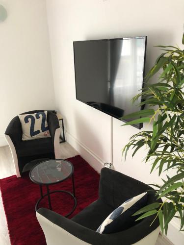 | L’hébergement SAILIN - hyper-centre - T2 cosy et calme - REOUVERTURE août 2025 après rénovation se situe à Lorient, à respectivement 800 mètres et 800 mètres de ces lieux d’intérêt : Gare de Lorient et Stade du Moustoir. Il propose des équipements tels qu’une connexion Wi-Fi gratuite et une télévision à écran plat. Cet appartement est à respectivement 4,3 km et 32 km de : Lorient Bretagne Sud Expo-Congrès et Gare SNCF de Plouharnel. Cet appartement se compose de 1 chambre, d'un salon, d'une cuisine entièrement équipée avec un réfrigérateur et une machine à café, ainsi que de 1 salle de bains avec une douche et un sèche-cheveux. Des serviettes et du linge de lit sont à disposition. Vous séjournerez à respectivement 46 km et 49 km de ces lieux d’intérêt : Gare de Quiberon et Pointe du Conguel. L'aéroport le plus proche (Aéroport de Lorient Bretagne Sud) est à 12 km. |
