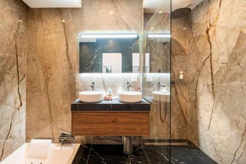 Appartement 1 Chambre    The hot tub is a top feature of this apartment. Boasting a private entrance, this apartment comes with a kitchen, 1 bedroom and 1 bathroom with a walk-in shower and a bath. The well-fitted kitchen features a stovetop, a refrigerator, kitchenware and a microwave. This apartment has a tea and coffee maker, flat-screen TV with streaming services, city views, as well as wine/champagne for guests. The unit has 1 bed. | ||