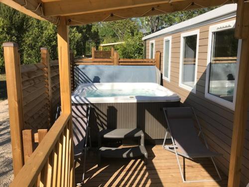 Mobil home Vaucluse – 6 personnes, 3 chambres, spa privatif sur la terrasse, tv, climatisation, lave-vaisselle