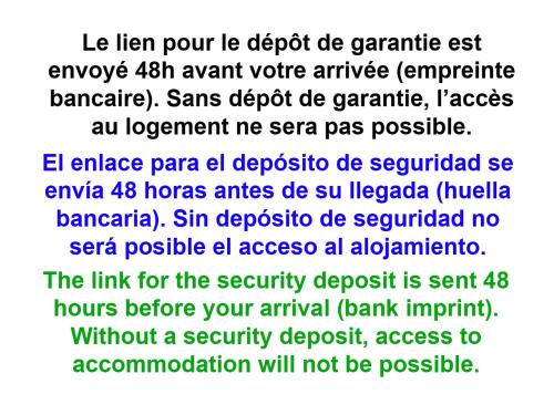 | Informations importantes | Les enterrements de vie de célibataire et autres fêtes de ce type sont interdits dans cet établissement. Veuillez informer l'établissement Au doux refuge, charmant T2 bis, parking gratuit, proche thermes, 6 personnes à l'avance de l'heure à laquelle vous prévoyez d'arriver. Vous pouvez indiquer cette information dans la rubrique « Demandes spéciales » lors de la réservation ou contacter directement l'établissement. Ses coordonnées figurent sur votre confirmation de réservation. Un dépôt de garantie d'un montant de EUR 300 est demandé. Votre hôte le débitera 7 jours avant votre arrivée. Il devra être payé par carte de crédit. Le remboursement devrait être effectué dans les 7 jours qui suivent votre départ. Le dépôt de garantie vous sera entièrement remboursé sur votre carte de crédit, si aucun dommage n'a été constaté par l'établissement. Hébergement géré par un particulier |