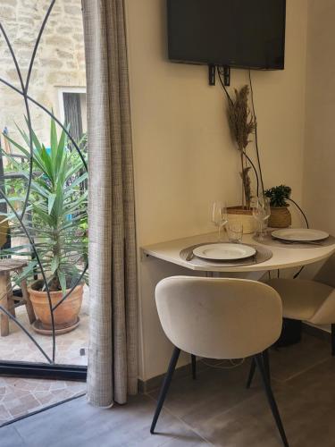 Appartement 1 Chambre    The air-conditioned apartment features 1 bedroom and 1 bathroom with a walk-in shower and a hairdryer. Meals can be prepared in the well-fitted kitchen, which is equipped with a stovetop, a refrigerator, kitchenware and a microwave. Featuring a terrace with an inner courtyard view, this apartment also provides a coffee machine and a flat-screen TV with streaming services. The unit offers 2 beds. | ||