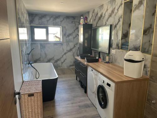 Offrant une vue sur le jardin, l’hébergement Maison paisible cadre agréable avec spa privatisé propose une piscine extérieure ouverte en saison et un balcon, à environ 6,1 km de ce lieu d’intérêt : Gare de Mulhouse. Cette maison de vacances possède une piscine privée, un jardin et un parking privé gratuit. Disposant d’une terrasse et offrant une vue sur la piscine, cette maison de vacances comprend 5 chambres, un salon, une télévision à écran plat, une cuisine équipée avec un réfrigérateur et un lave-vaisselle, ainsi que 1 salle de bains avec une baignoire ou une douche. Des serviettes et du linge de lit sont disponibles. L’établissement Maison paisible cadre agréable avec spa privatisé dispose d’un bain à remous. Vous séjournerez à respectivement 7,1 km et 39 km de ces lieux d’intérêt : Parc Expo Mulhouse et Maison blanche et maison bleue. L'aéroport le plus proche (EuroAirport Mulhouse) est à 31 km. |