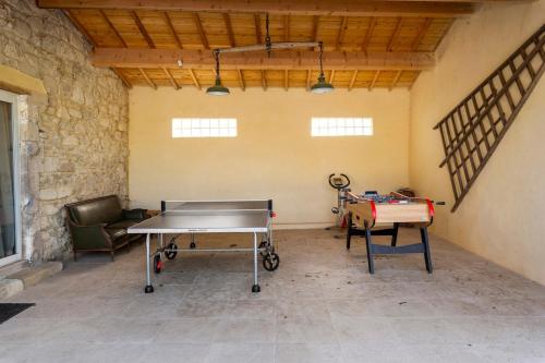 Situé à Maillane, l’hébergement Manade Caillan, Mas Provençal Piscine, Pétanque, patio offre une vue sur la piscine. Il propose une piscine extérieure ouverte en saison, un jardin, une terrasse et une connexion Wi-Fi gratuite. Cette villa comprend un parking privé gratuit et se trouve dans une région où vous pourrez pratiquer des activités telles que la randonnée, la pêche et le ping-pong. Cette villa avec climatisation se compose de 4 chambres, d'un salon, d'une cuisine entièrement équipée avec un réfrigérateur et une machine à café, ainsi que de 3 salles de bains avec une douche et un sèche-cheveux. Des serviettes et du linge de lit sont disponibles. Si vous souhaitez découvrir la région, vous aurez la possibilité de pratiquer le vélo dans les environs. Un service de location de vélos est assuré sur place. Vous séjournerez à respectivement 20 km et 21 km de ces lieux d’intérêt : Gare TGV d'Avignon et Gare d'Avignon-Centre. L'aéroport le plus proche (Aéroport de Nîmes Alès Camargue Cévennes) est à 46 km. |