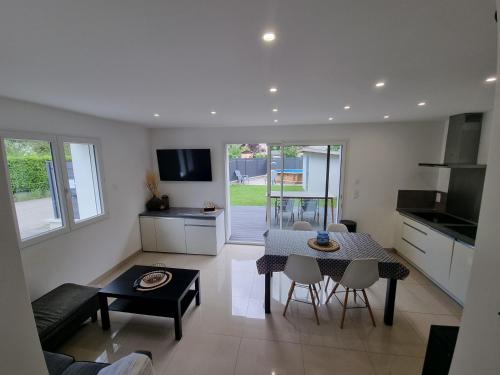 Proposant un salon commun et offrant une vue sur la piscine, l’hébergement Évasion et confort maison 8 couchages avec piscine se situe à Marlens, à respectivement 20 km et 28 km de ces lieux d’intérêt : Halle Olympique d'Albertville et Palais de l'Ile. Cette villa possède un parking privé gratuit, une cuisine commune et une connexion Wi-Fi gratuite. Disposant d’une terrasse et offrant une vue sur la montagne, cette villa comprend 3 chambres, un salon, une télévision à écran plat, une cuisine équipée avec un réfrigérateur et un lave-vaisselle, ainsi que 2 salles de bains avec une douche. Des serviettes et du linge de lit moyennant des frais supplémentaires. Lors de votre séjour, vous pourrez nager dans la piscine extérieure, vous détendre dans le jardin, et pratiquer la randonnée et le ski. Vous séjournerez à respectivement 28 km et 35 km de ces lieux d’intérêt : Château d'Annecy et Le Rabelais Salle de Spectacles. |