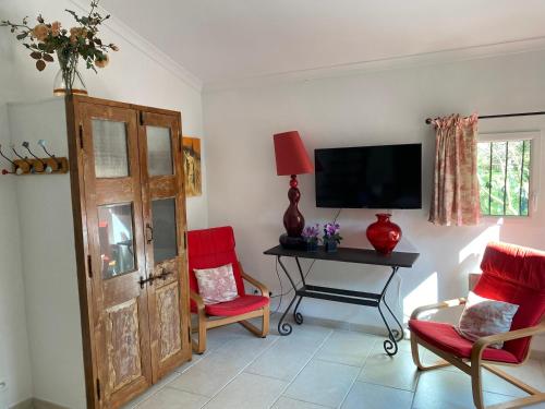 Situé à Mérindol, l’hébergement Mas des Bômes et spa merindol offre une vue sur la piscine. Il propose une piscine extérieure ouverte en saison, un jardin, une plage privée et une connexion Wi-Fi gratuite. Cette chambre d'hôtes comprend un parking privé gratuit et se trouve dans une région où vous pourrez pratiquer des activités telles que la randonnée, le vélo et le ping-pong. Cette chambre d'hôtes comprend une télévision à écran plat. L’hébergement possède une cuisine équipée d’un réfrigérateur, d’un four et d’un micro-ondes. Il comprend également une douche, des articles de toilette gratuits et un sèche-cheveux. Le personnel de la réception ouverte 24h/24 parle anglais, espagnol et français. L’établissement Mas des Bômes et spa merindol possède une terrasse et une aire de jeux pour enfants. Vous séjournerez à respectivement 39 km et 48 km de ces lieux d’intérêt : Parc des expositions d'Avignon et Gare d'Avignon-Centre. |