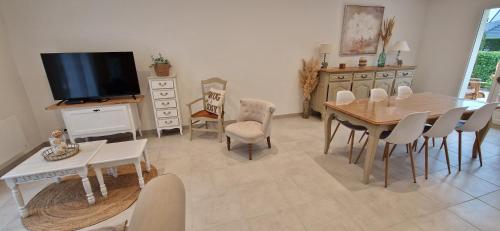 L’hébergement en bord de mer Au Jardin d'Olga vous accueille à Mesnil-Saint-Père, à seulement 24 km de ce lieu d’intérêt : Espace Argence. Il comprend un service de prêt de vélos, un jardin, une terrasse et une connexion Wi-Fi gratuite. Cet hébergement est installé à 24 km de : Gare de Troyes. Il possède un restaurant et un parking privé gratuit. Cette maison de vacances possède 3 chambres, une télévision à écran plat avec les chaînes du satellite, une cuisine équipée avec un réfrigérateur et un lave-vaisselle, un lave-linge, ainsi que 1 salle de bains avec une douche. Des serviettes et du linge de lit moyennant des frais supplémentaires. L’établissement Au Jardin d'Olga dispose d’un spa. Vous pourrez profiter d’un parc aquatique sur place, et pratiquer le vélo dans les environs. Vous séjournerez à respectivement 22 km et 24 km de ces lieux d’intérêt : Stade de l'Aube et Nigloland. L'aéroport le plus proche (Aéroport Châlons-Vatry) est à 76 km. |